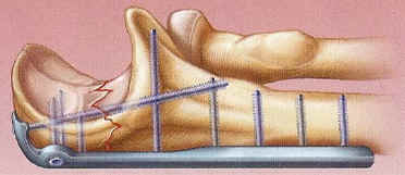 caput radii instabilitet, skinne og skruer på distale ulna og fiksation af
