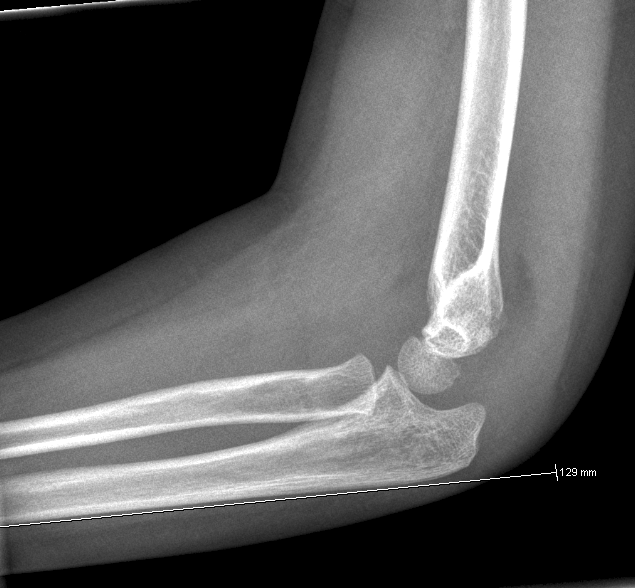 En linie langs forsiden af humerus går normalt igennem midterste 1/3 del af capitulum humeri, hvis capitulum ligger bagved skal der reponeres og osteosynteres i GA. Hos børn under 4 år tillades lidt større dislokation.