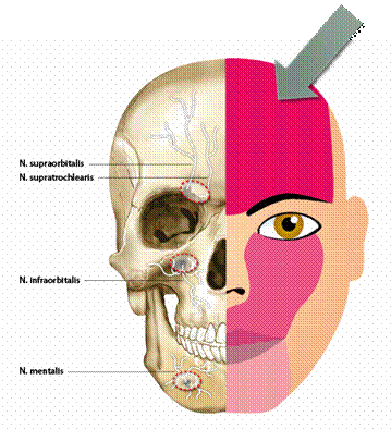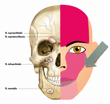 supraorbitalis, supratrochlearis, infratrochlearis (V1)