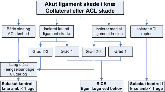 Grad II: ses i ortopædkirurgisk ambulatorium ved knælæge subakut (evt i skadestuen).