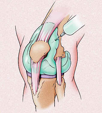 Ved enhver knæpunktur skal der tages grundige forholdsregler for at undgå en kontaminering af knæet. Knæregionen skal først vaskes regulært ren med sæbe og vand. Derefter kan anvendes sædvanlig huddesinfektion, f.eks. Hibitane, hvorefter montering af sterilt hulstykke. Der skal være steril opdækning af et bord ved siden af. Operatøren skal have sterile handsker.