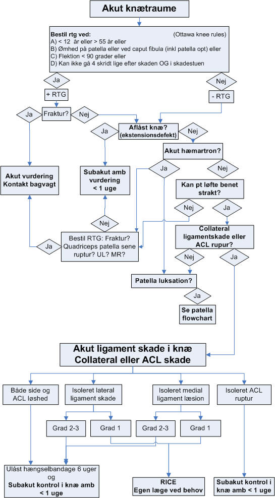 traumatisk ansamling. Se Ottawa og Pittsburg knee rules (link)