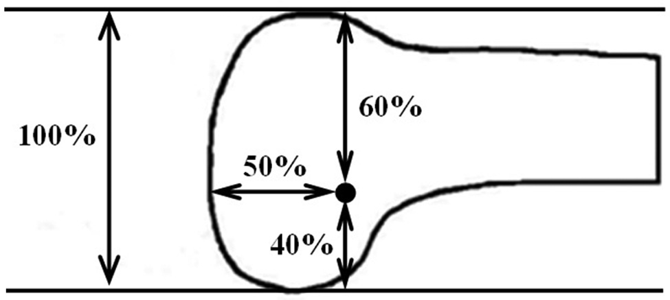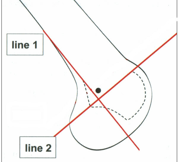 tuberositas til kanten af billedet på skærmen. Gentag målingen fra midten af