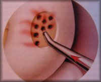 Med sylene laves mikrofrakturhuller med ca. 3 mm. mellemrum i knoglen. (Århus instruks)