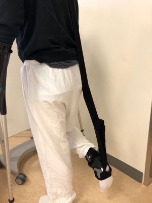 • Benyt stokke i op til 6 uger post opr. • 0-2 uger: Tå støtte (skygge belastning) • 3-4 uge: 15-40 % vægtbæring