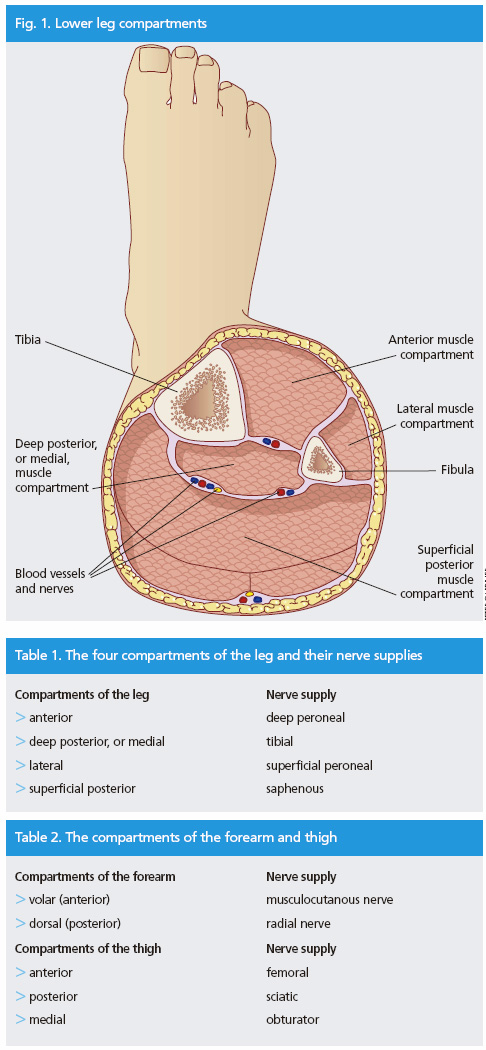 Skal altid behandles med akut faciotomi. (Se herunder, 4 kompartment)