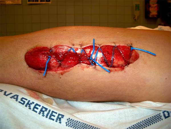 Sæt evt agraffer med gummibånd efter faciotomien mhp senere lukning